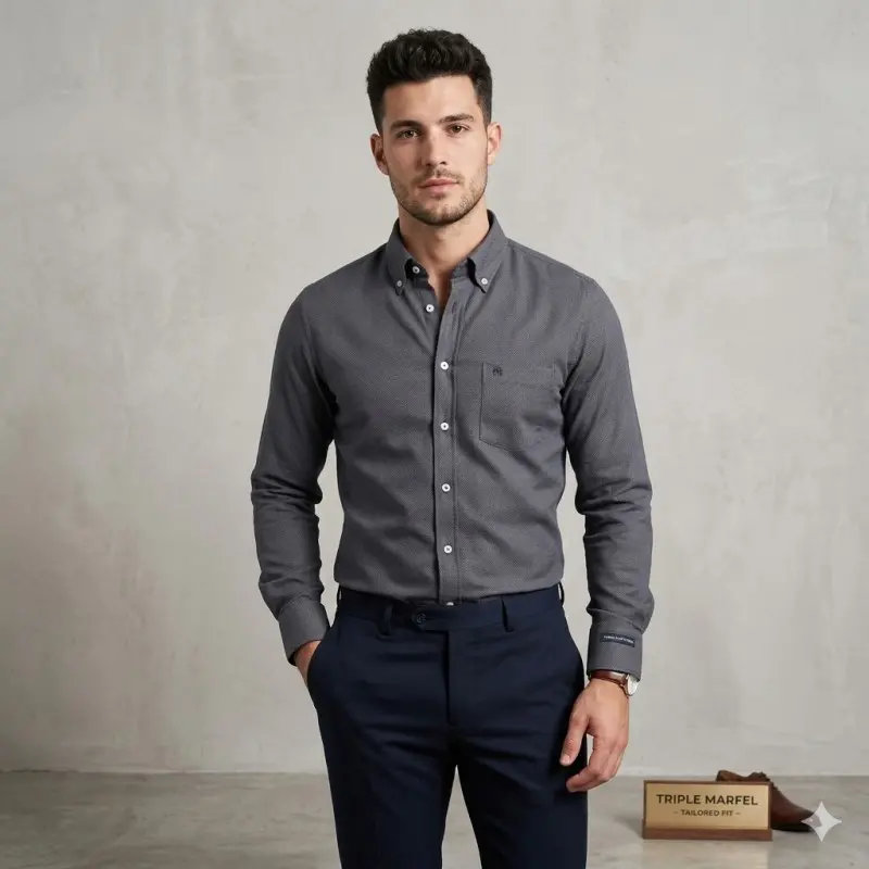 Camisa fina e macia com textura, tailored fit da Triple Marfel