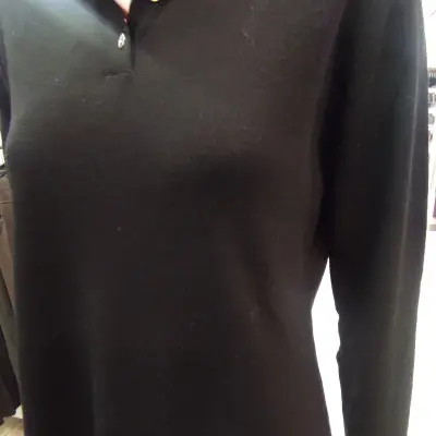 Modelo simples e elegante de ampla abertura ao peito em botões.