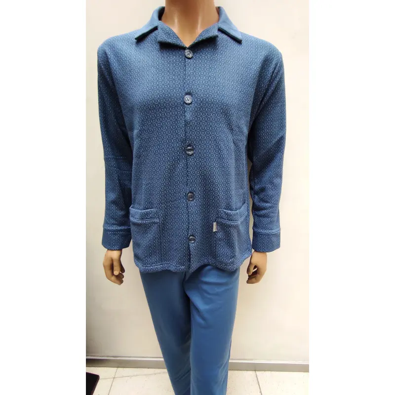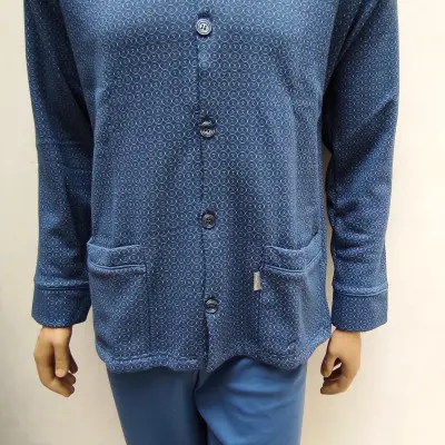 Pijama-casaco cardado Gola em bico 25126 Hexagonos