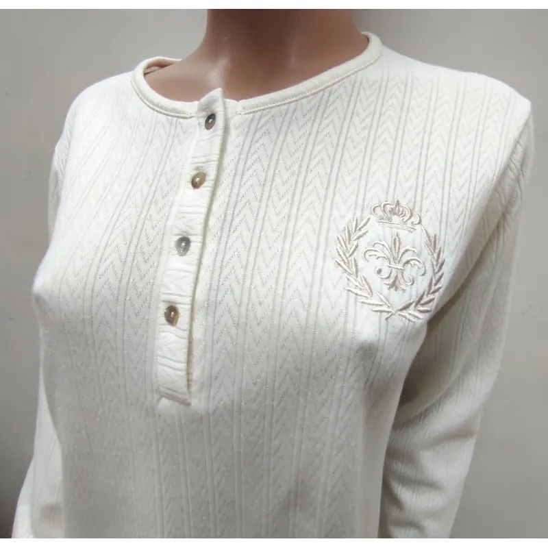 Pijama cardado no interior, macio de ampla abertura de botões ao peito