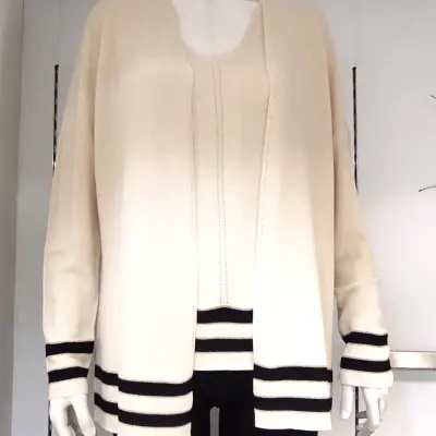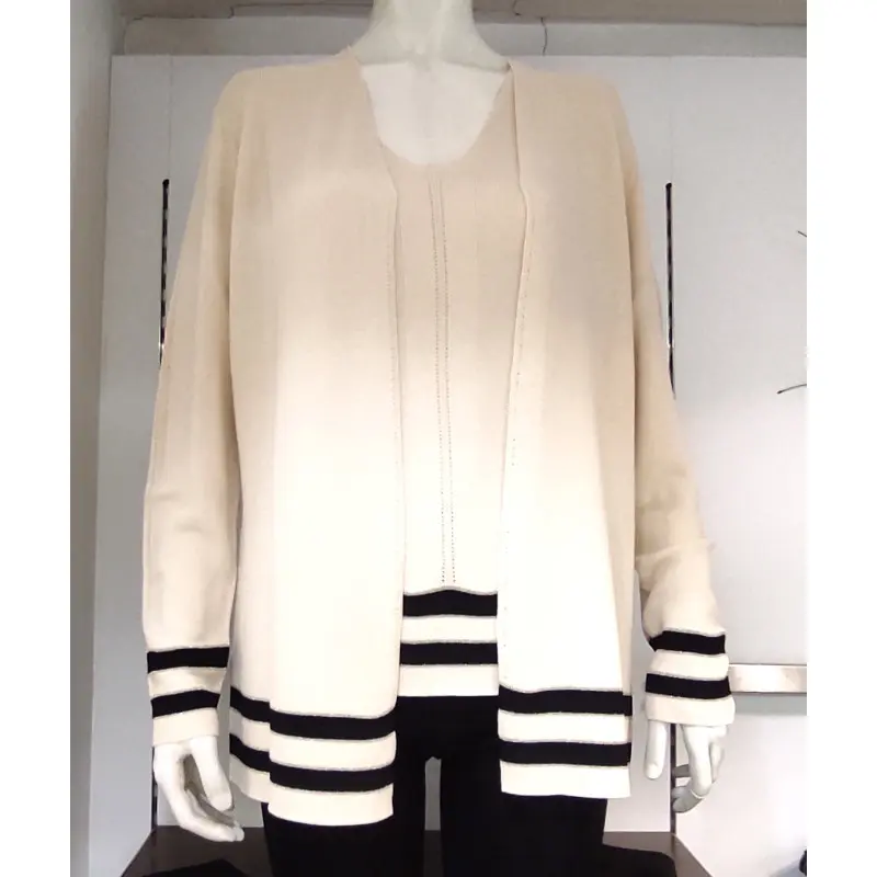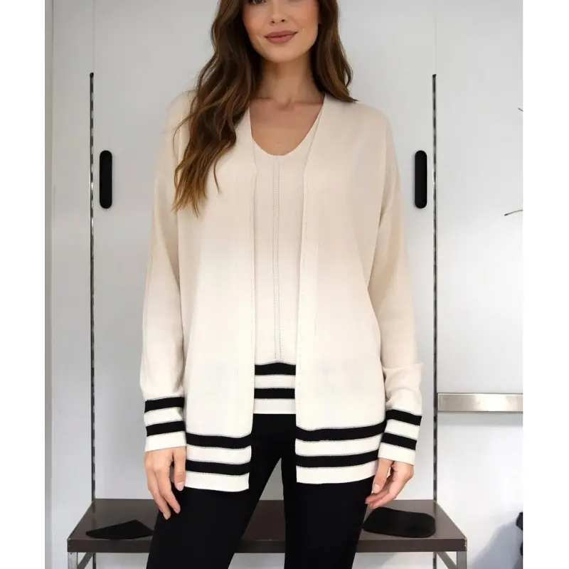 Casaco de malha fina aberto borda listrada 26101