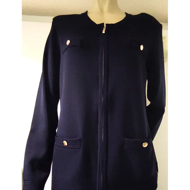 Modelo elegante, com suave padrão floral e bolsos