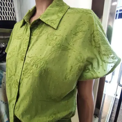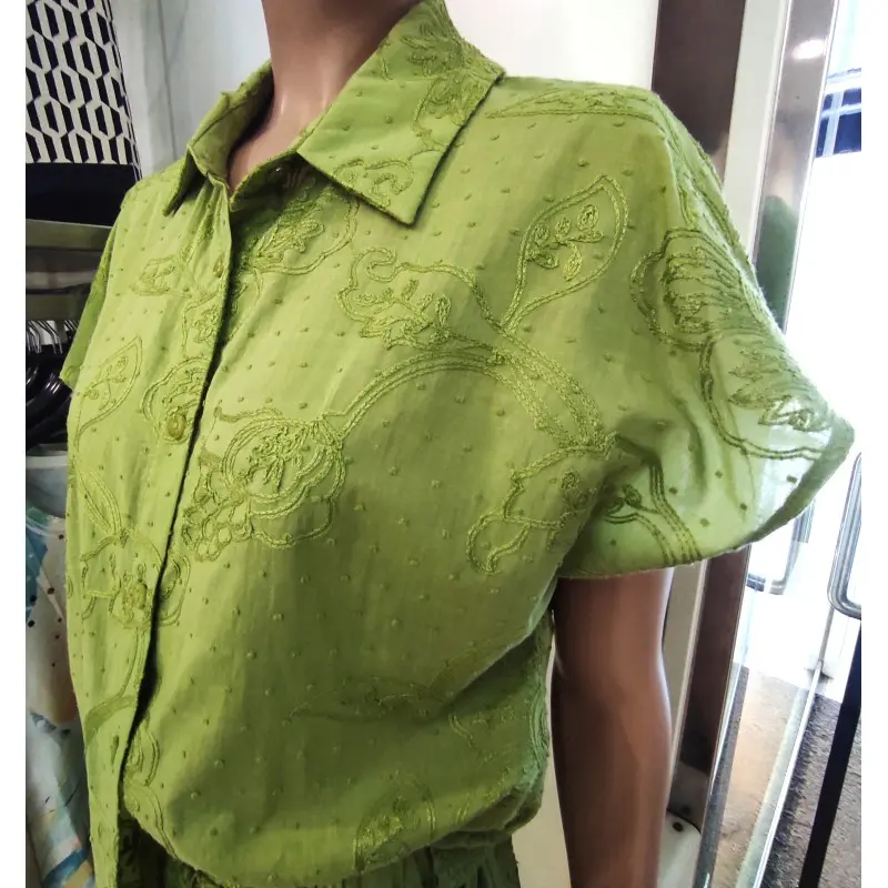 Blusa 100% algodão macio, de abotoar com gola e bordada