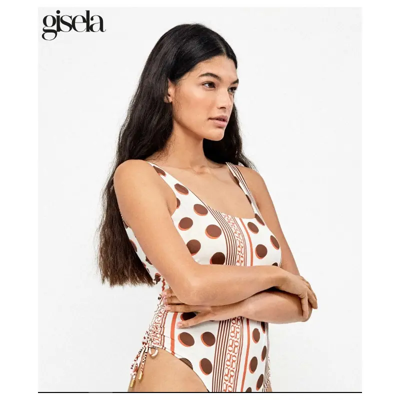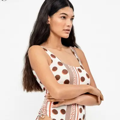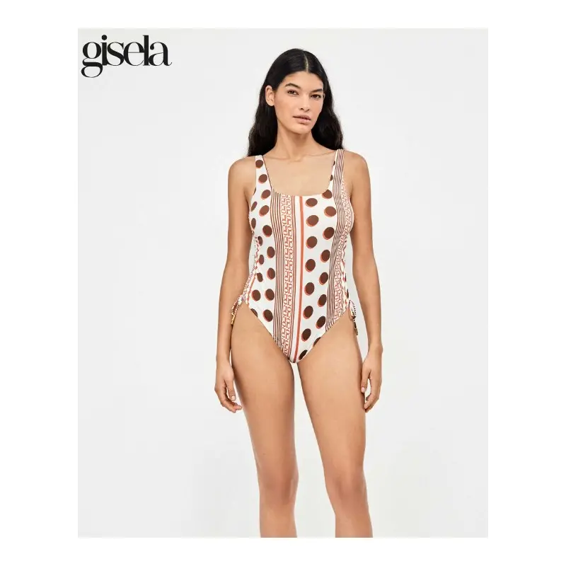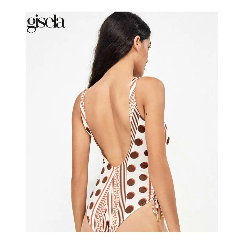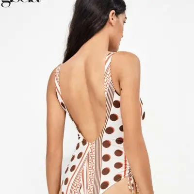 Fato de Banho decotado atrás Bolas e Riscas Marron 30303