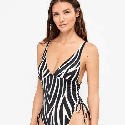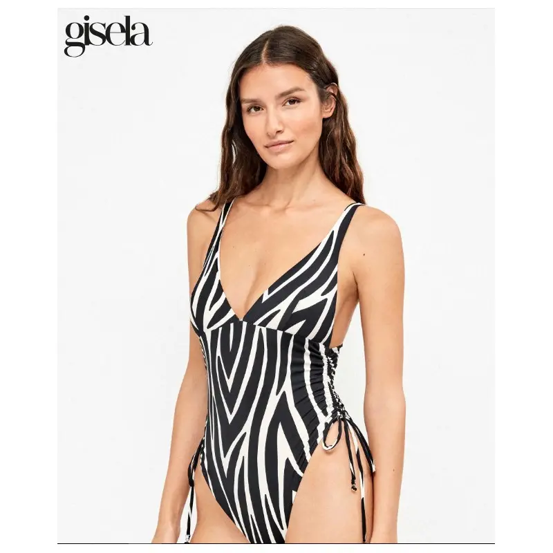 Fato de banho de paria, de padrão contrastante animal da Gisela