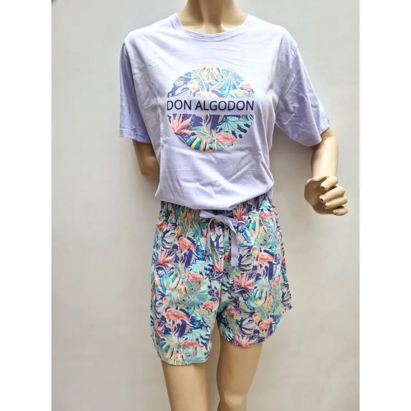 Pijama de abertura até baixo na camisola, com gola e padrão colorido
