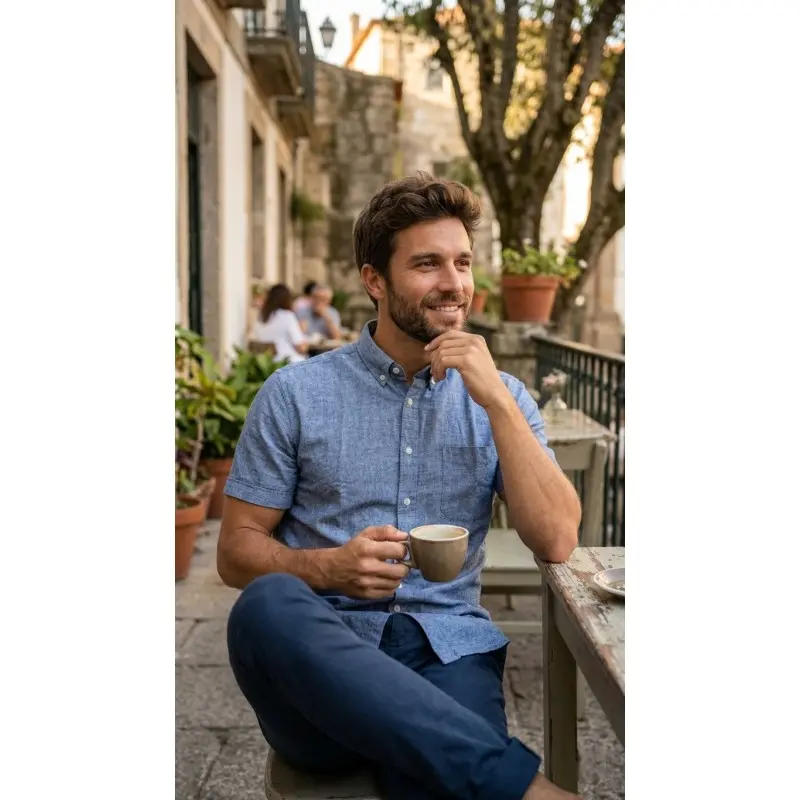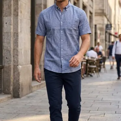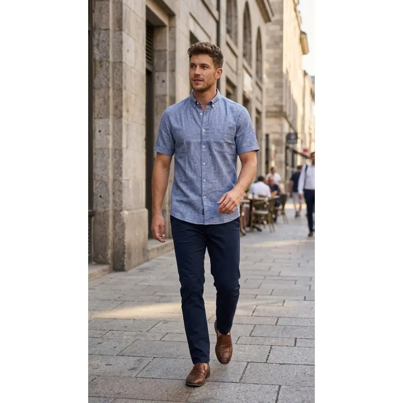 Camisa elegante e fresca, de manga curta, corte regular e bolso ao peito